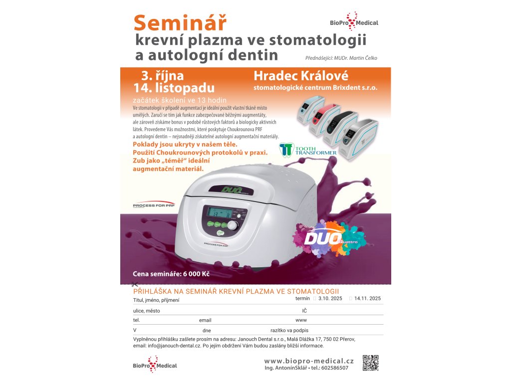 Praktický kurz - Krevní plazma a autologní dentin ve stomatologii